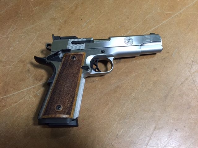 Una Smith & Wesson modelo 1911 del performance centre en acabado inox calibre .45 ACP. Un arma excepcional en estado Nuevo en todos los aspectos, practicamente sin uso. Tiene maletin original y cargadores.