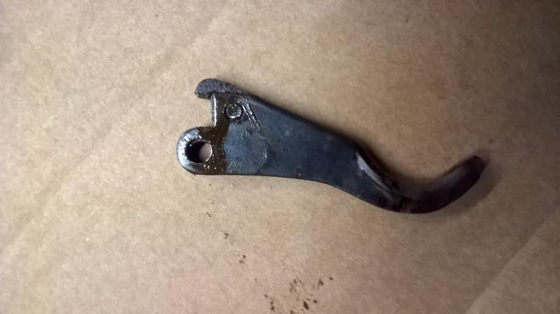 He leído todo lo que he encontrado sobre el tema y todo apuntaba a que la uña del gatillo podría estar desgastada por el uso, pero al desmontar me encuentro que aparentemente está bien. La del pistón también. Pero al sacar el émbolo me doy cuenta de que sale sin la junta de cuero ni el tornillo. Después de empujarle por el otro lado con un alambre para sacarla, empiezo a pensar que quizá se ha desenroscado sola. Pero ésto me extraña mucho, y además no veo relación con que se disparase sola. ¿Qué os parece a vosotros?