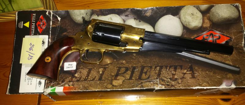 Hola compañero yo de armas de avancarga entiendo poco pero si se que es un .44 de armazón de latón marca pieta y que no se a disparado nunca en las fotos de ven los marcajes y en la caja pone algo como 1858 RMG TEXAS y poco más.