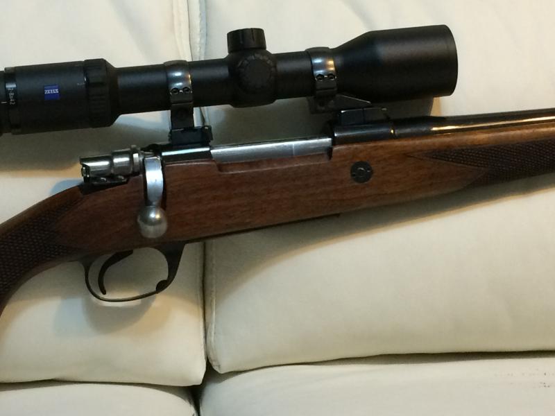 Bueno pues ya he terminado la customizacion de mi Santa 7x57, lo he vuelto a pavonar ya que antes parecía que tenía una mano de titanlux,le he puesto cantonera holland,repasado los picados,lijada la culata y puesta al aceite, cambio de visor por un zeiss conquest Dl 2-8x42 óvalo con iniciales, le he puesto un gatillo timney, puesto a tiro con Norma Oryx de 156 gr y a 150 metros los mete en una moneda de euro fácilmente, estoy muy contento de cómo ha quedado y sobre todo por que es todo español, Rifle y calibre, espero que os guste.