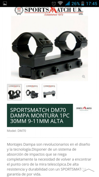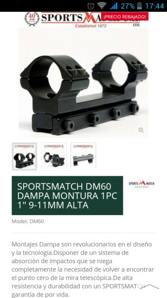 Con monturas Dampa te cambiará cada dos por tres el punto de impacto. Con Sportsmatch monopieza no se te moverá ningún visor a 22 julios.