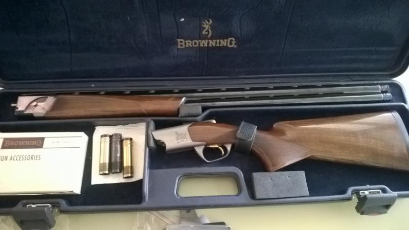 Browning Cynergy Pro Sporting, 12/76, 76 cm de cañón, cañones Back-Bore, selector de tiro, 5 chokes Invector Plus Diamond exteriores, 3 gatillos diferentes intercambiables, puntos de mira intercambiables Hiviz varios colores y grosores, cantonera original mas otra Kimber de caucho, Usada para cazar en puesto fijo, compak sporting como aficionado.
