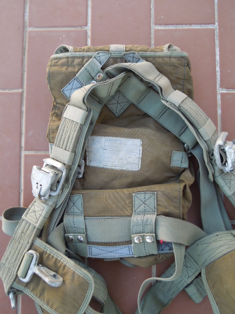 Vendo arnés de paracaídas del Ejercito del Aire. Se trata de un CIMSA (Confecciones Industriales Madrileñas S.A.) de los años 80, al parecer. El modelo no se lee bien, pero creo que es TD 2.