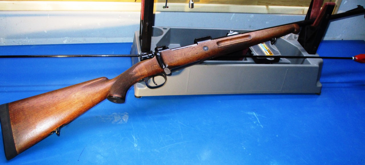Ponemos fotos del rifle ya listo para disparar a falta de montaje de visor sobre las bases. La madera está ya acabada al aceite y su tacto y olor es magnífico aunque su calidad es simplemente funcional pues algunos nudos y diferencias en su coloración natural no permiten mejores acabados. A mi me gusta como está, sobre todo teniendo en cuenta que se pretende hacer un rifle de caza para usarlo y mantener la línea original, algo anticuada pero molona, del rifle.