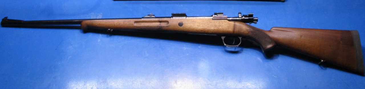 Ponemos fotos del rifle ya listo para disparar a falta de montaje de visor sobre las bases. La madera está ya acabada al aceite y su tacto y olor es magnífico aunque su calidad es simplemente funcional pues algunos nudos y diferencias en su coloración natural no permiten mejores acabados. A mi me gusta como está, sobre todo teniendo en cuenta que se pretende hacer un rifle de caza para usarlo y mantener la línea original, algo anticuada pero molona, del rifle.