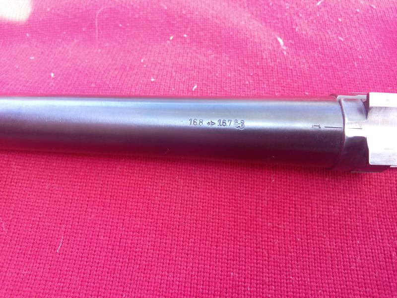 Hola tu Auto-5 esta fabricada entre el 30/6/1952 y el 31/12/1952, por lo tanto es del segundo semestre del año 1952, la presion del cañon es de 865 KG por cm cuadrado, la recamara es de 70 mm y tengo dudad en cuanto al choque, pero yo diría que la diferencia entre 16,8 y 16,7 es de una décima, por lo tanto estaríamos hablando materialmente de un cañón casi cilíndrico, pero no estoy seguro de que esas marcas sean del choque.