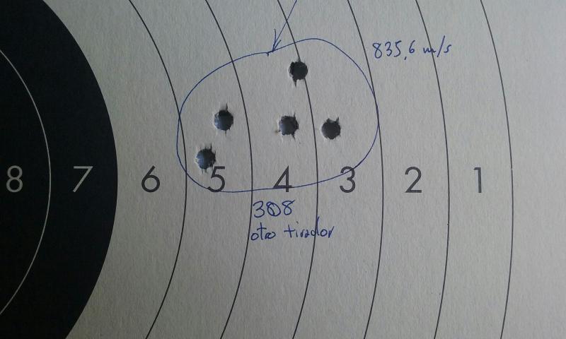 La pruebas realizadas con el 308 W, tengo que decir que para el tiro usaba T3000 sobre 38,0 ó 39,5 grs y estas cargas son más fuertes y se nota sin ser molestas.