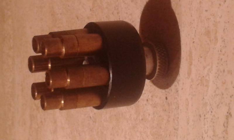 Cargador/alimentador rápido para revólveres. Los cartuchos BACs .38/.22 que se muestran no están a la venta.