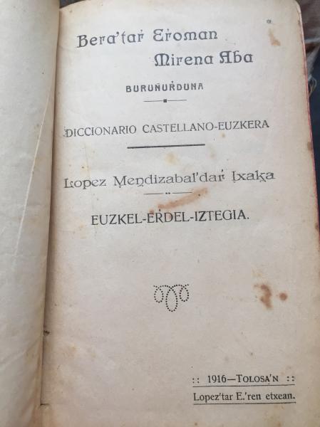 Un diccionario de Euskera de 1916, del famoso Lopez Méndizabal