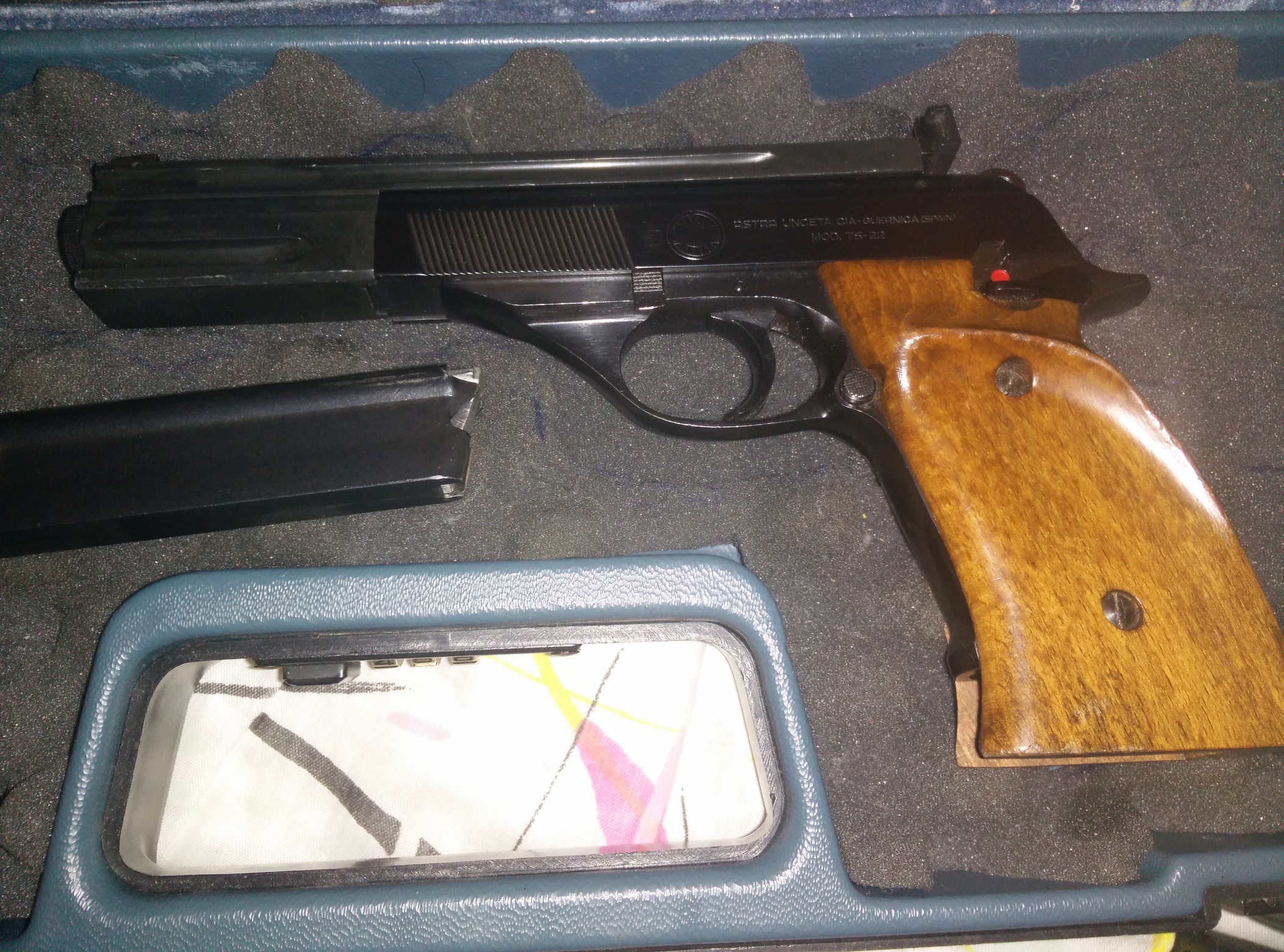 vendo astra ts-22 muy buen aspecto tanto de mecánica como de pavon, gatillo afinado a 1 kg solo tiene 1 cargador. el arma se encuentra en un pueblo de Toledo. 100€