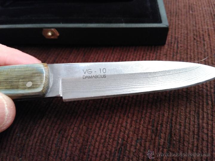 Navaja Exposito en mamut con acero VG10 Damascus y con el certificado del artesano.