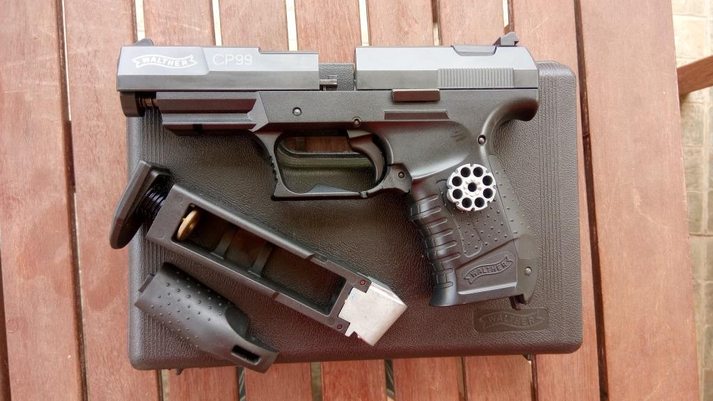 Vendo Walther CP99 perfecta de funcionamiento y de aspecto exterior. Se vende con todo lo que se ve en la foto, incluido el maletin. Precio 75 € incluido el envio a peninsula. Un saludo