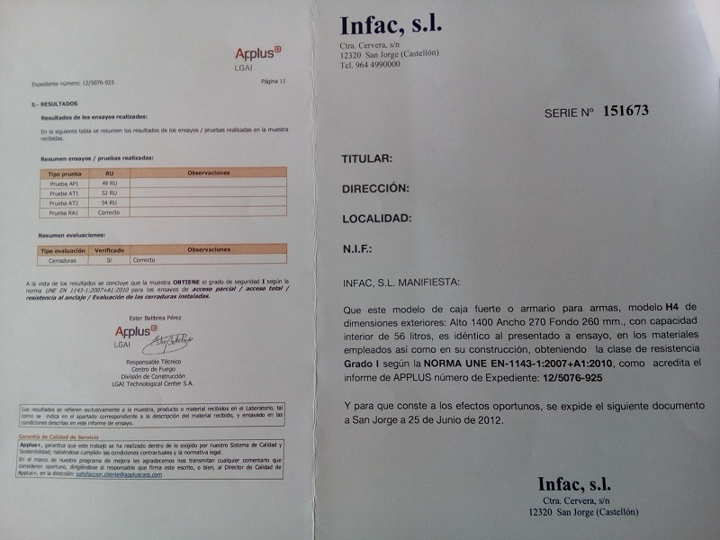 Respecto a tus dudas te diré q el armero es el H4, luego adjuntaré foto del certificado de homologación donde se puede ver, y en cuanto a la capacidad del armero con visores depende del número de armas largas, entran 5 sin visor, pero con visor a mi me entraban tres, pero dependerá del tamaño de las armas, rifles o carabinas y del tamaño de los visores supongo