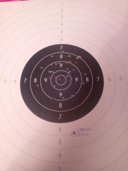 Os dejo una diana de hoy que me ha encantado! Nunca habia hecho una agrupacion tan cerrada y tan centrada, aunque siga baja a la izquierda.
