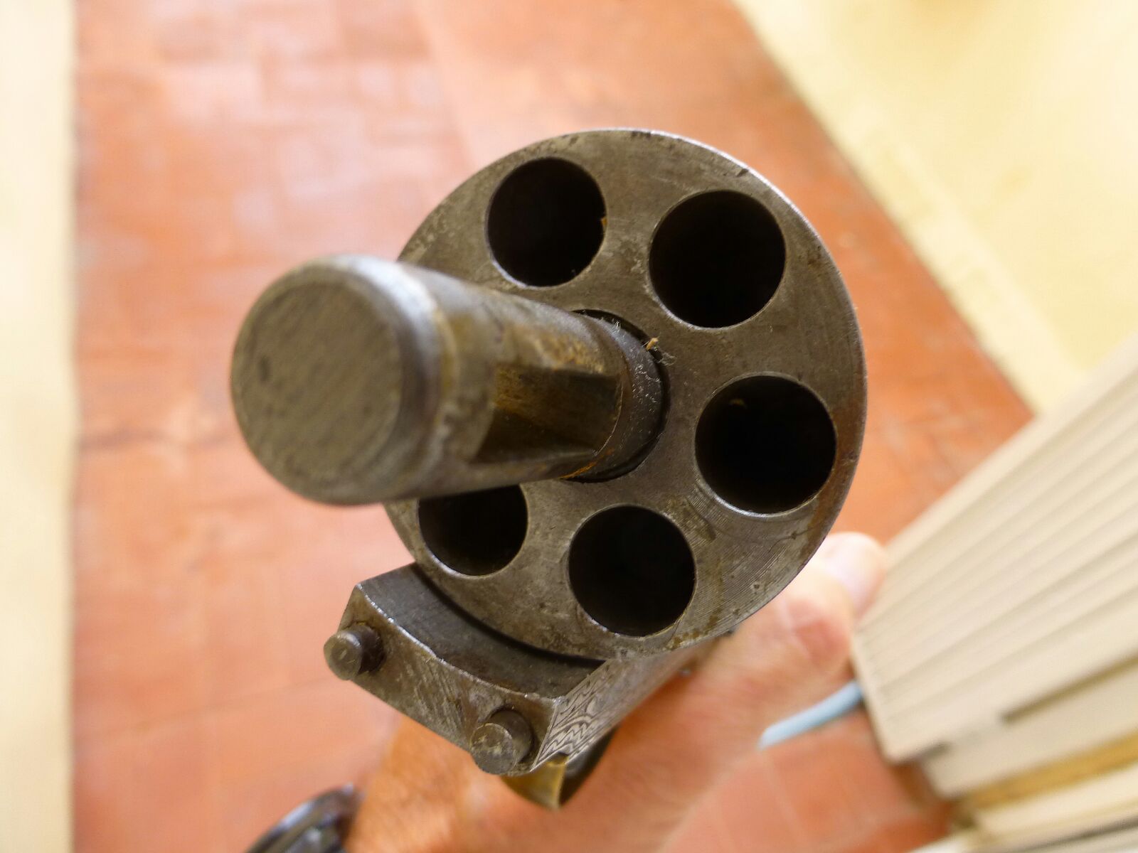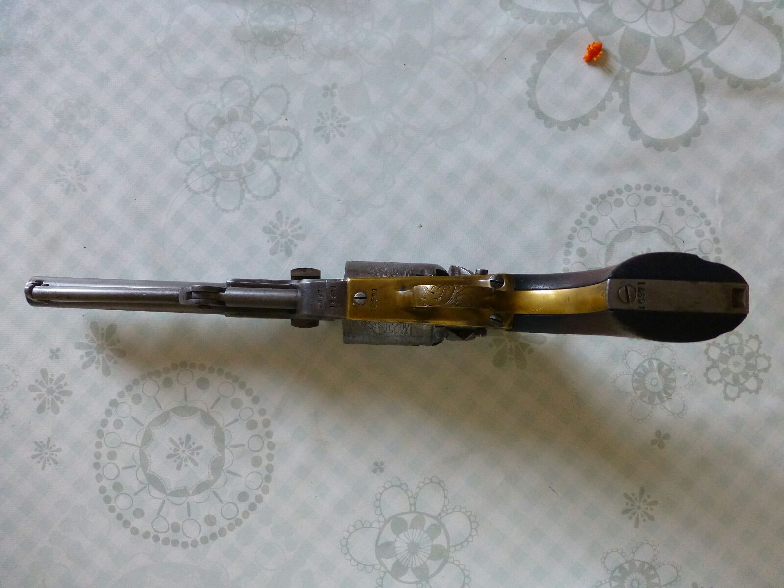 Hola buenas nuevas fotos del revolver, antes de nada decir que su propietario es una persona seria y no quiere hacer pasar una cosa por otra, simplemente tiene esta pieza y la quiere vender a su precio justo y justo es lo que uno esta dispuesto a pagar en este mundo del coleccionismo, a mi en concreto me llena la pieza pero si no es original sera otro precio por supuesto,
