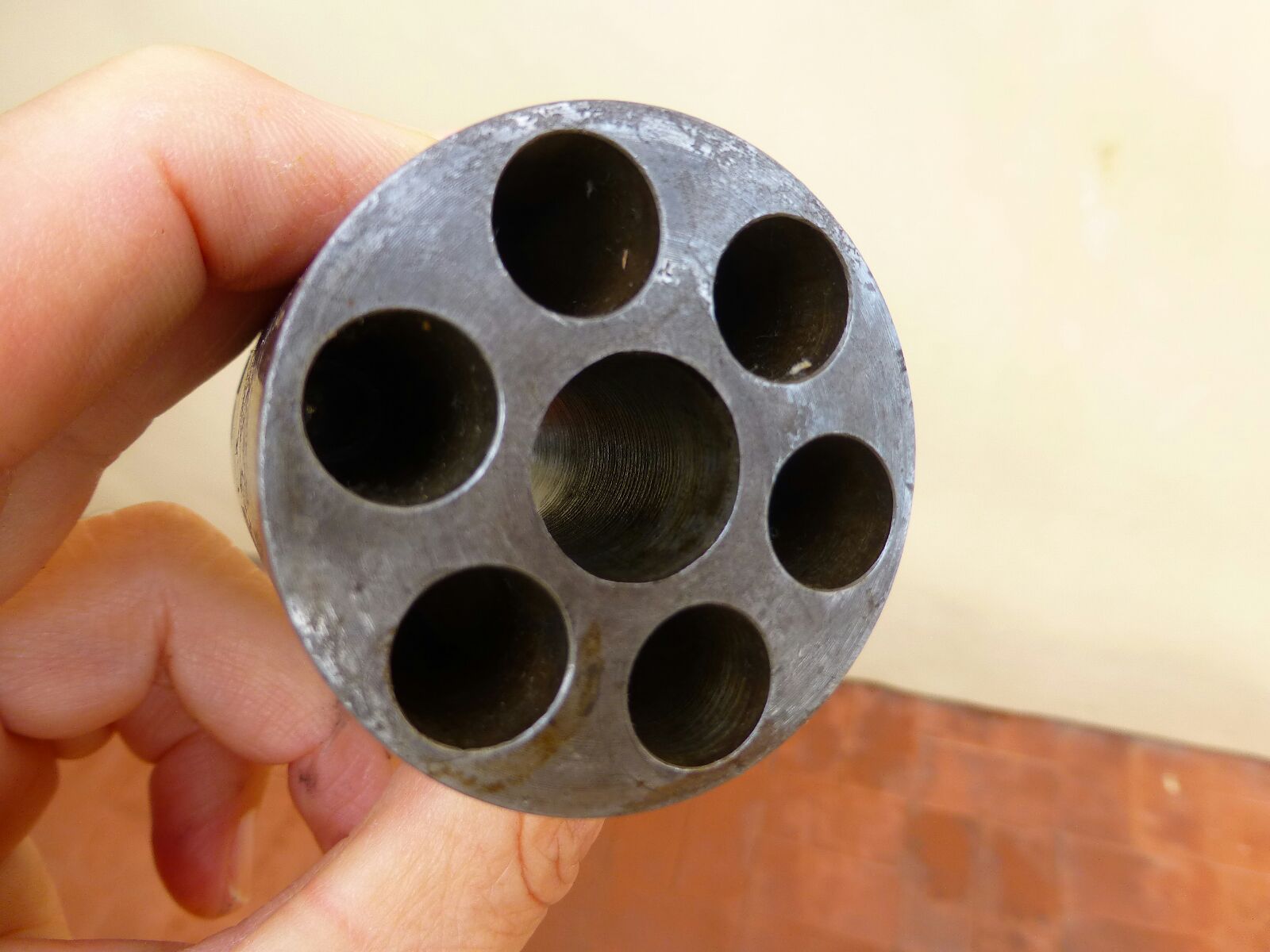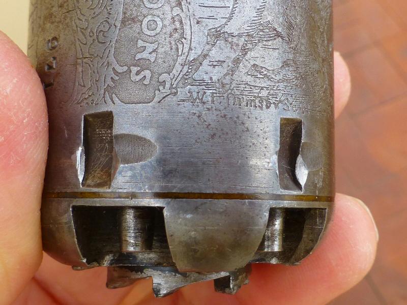 Luego hay otros detalles como la calidad de los grabados (no soy experto pero algunos parecen hechos con ácido, en el tambor, no sé si era lo habitual o no), acabados, partes más desgastadas o limadas que otras, chimeneas con agujeros desiguales, algo que no se si será un pegote de grasa o de hierro: