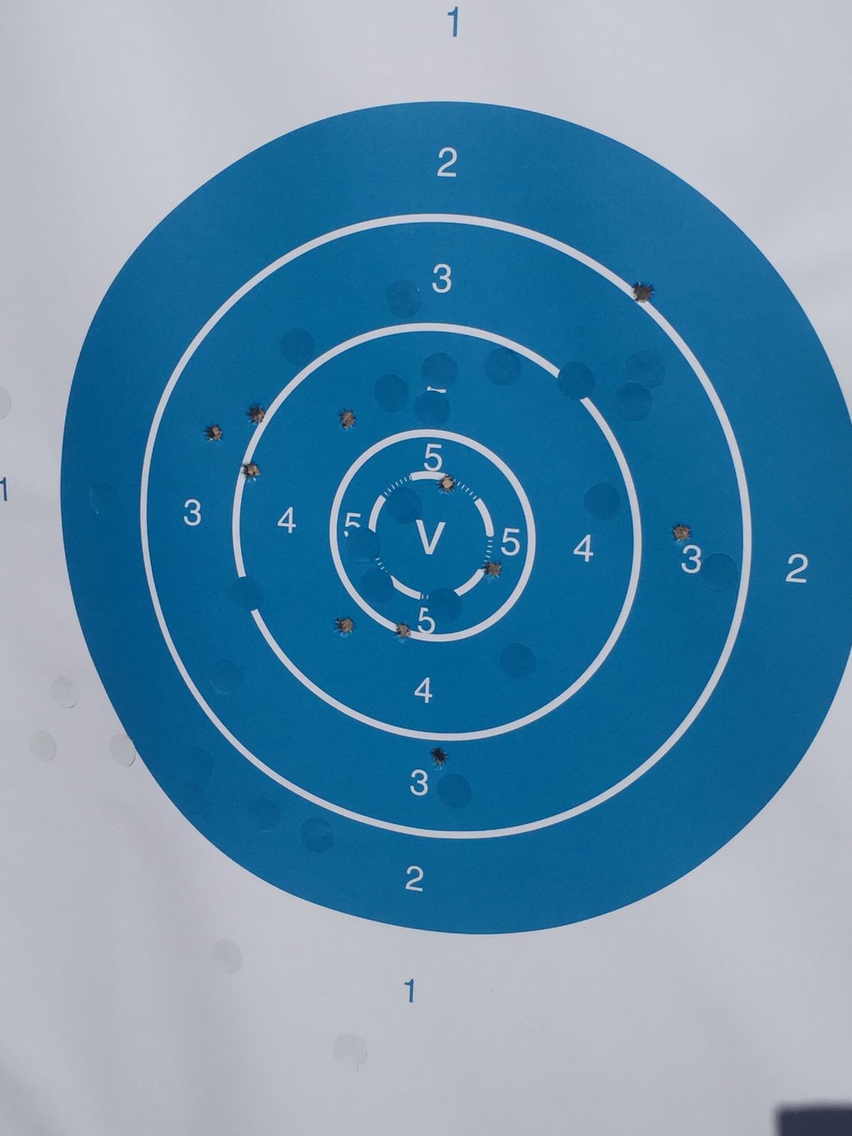 He vuelto a probar lo de coger solo la puntita del punto dentro del vértice de la V del alza dejando el círculo del blanco dentro de la V en la parte superior.
