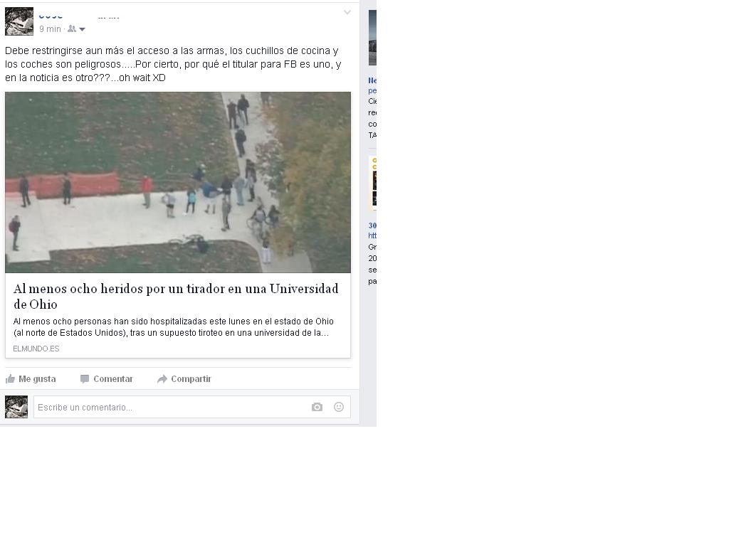 En el Whats esta bien, porque la he pasado a un par de contactos, pero en el FB pone como titular 8 heridos por tirador...