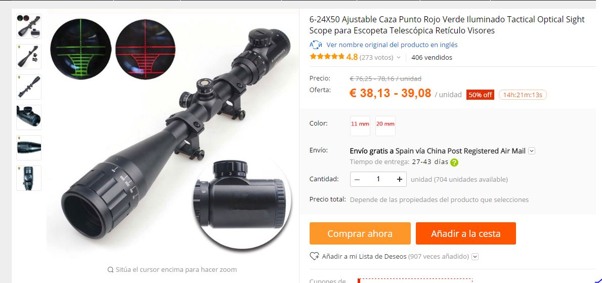 Los tienes en Aliexpress, por menos de 40 €........garantia de que aguanten en una carabina de muelle, NINGUNA, aunque, por aqui, te venden el mismito a 100 € y pico............