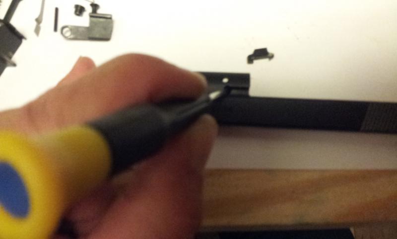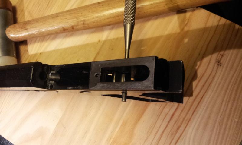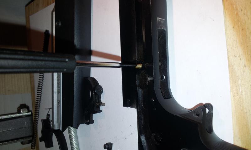 Aquí vemos el pasador de ajuste de dureza del disparador y su fleje.
