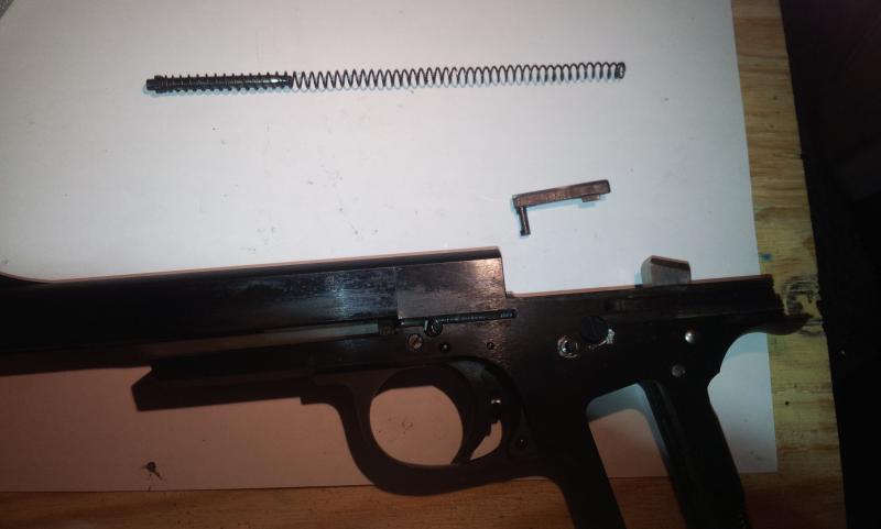 Aquí tenemos la expulsora y el muelle de la corredera con su guía.