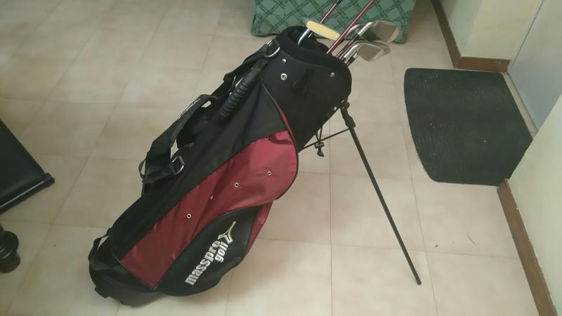 Hierros num. 9,7, 5 y S. Madera 3 e hidrido de 21º y putter.