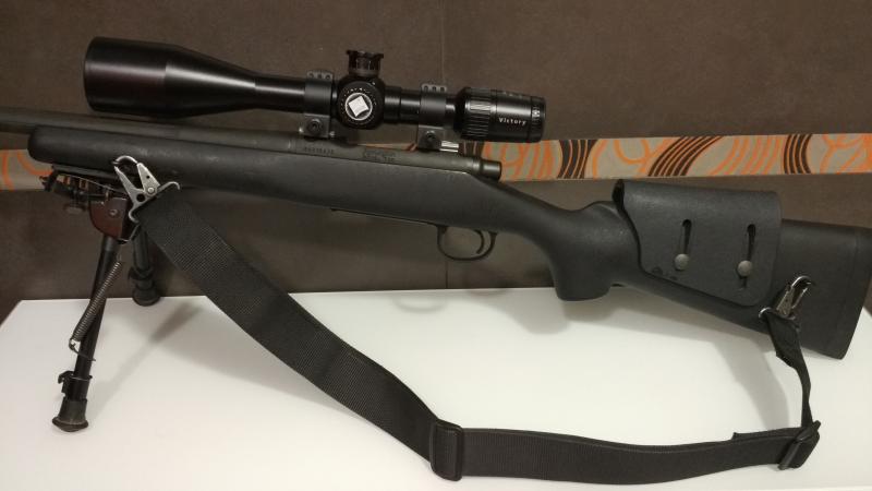 Le puse unas anillas en el lateral de la culata y del guardamanos para poder llevarlo más cómodamente cruzado a la espalda. La entrego con correa de G36 y carrillera ajustable Kersten.