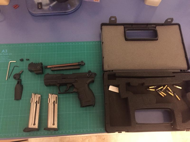 Vendo walther P22, cal. 22 con cañon corto y cañon largo. Dos cargadores, maletin y manual. Ideal para iniciarse en tiro deportivo, y para arma de uso particular, por su tamaño. Interesados wasap al 687458038. Precio 250€