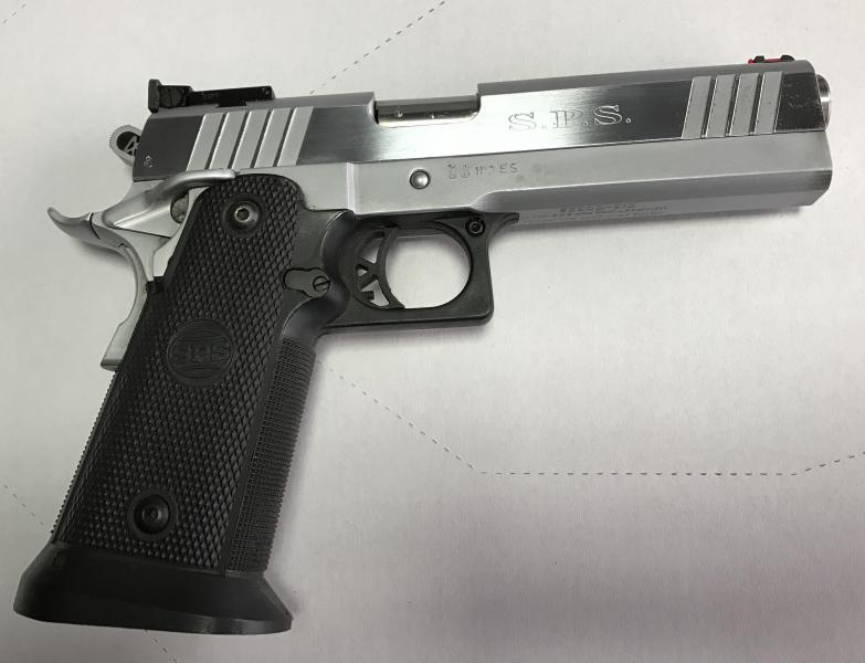 Es una pistola SPS Pantera de las más nuevas, del Cal. 40 SW con corredera y cañón también SPS Pantera nueva, del 9Pb.