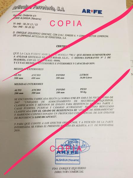 Vendo Armero Homologado Grado III ARFE, serie 7701,con los documentos necesarios para presentar en intervención de armas
