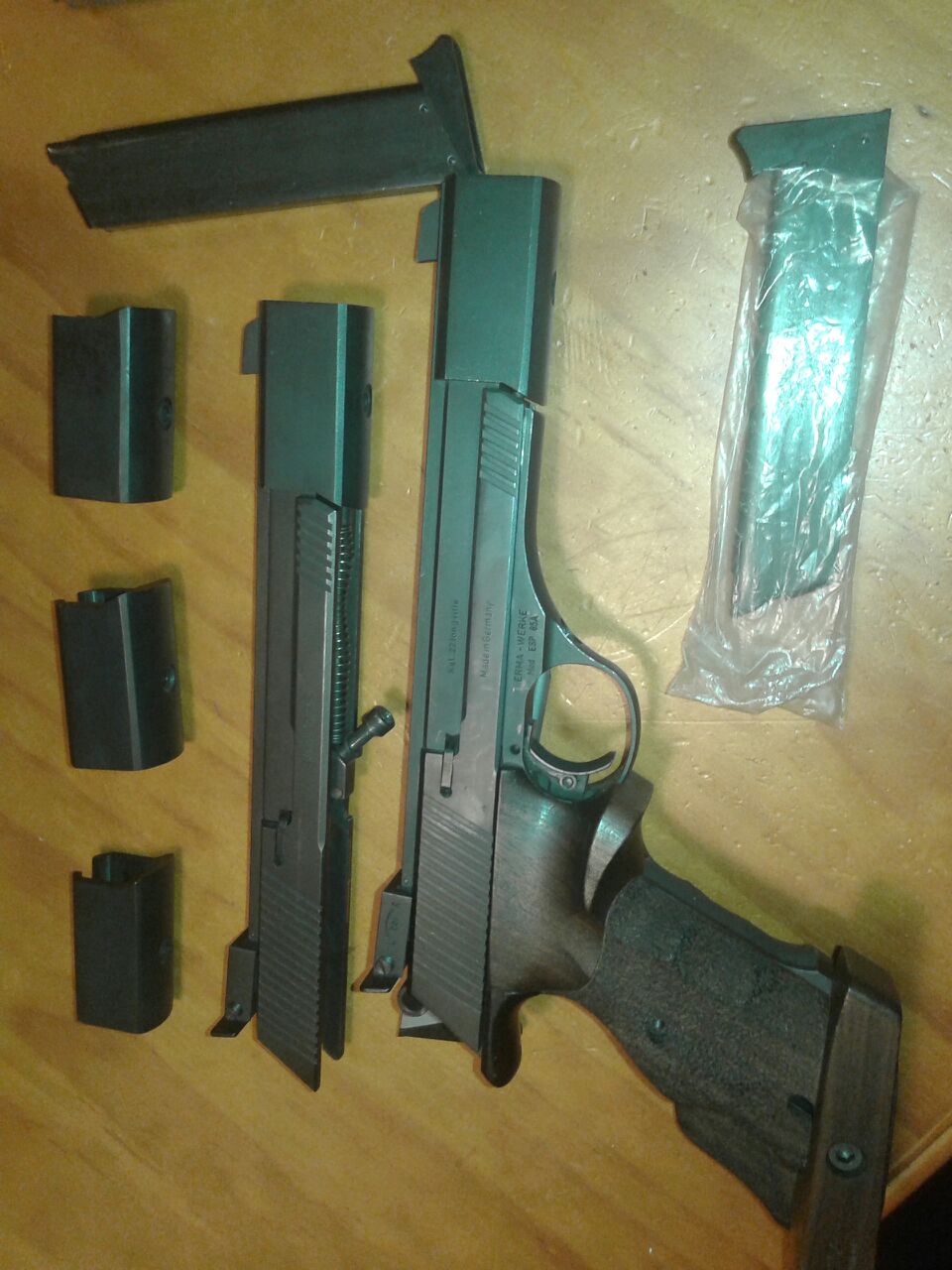 Todo el lote pistola Erma calibre 32 dos cargadores carro calibre 22 le dos cargadores dos contrapesos un recogedor de vainas. Maleta de trasporte.telescopio de tiro muy bueno.todo incluido 760 €