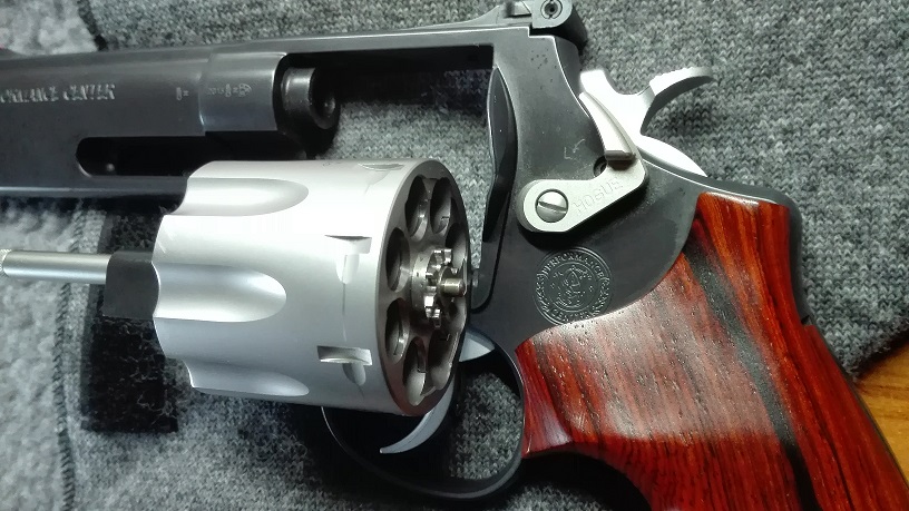 Modelo de revolver terminado por el equipo del performance center de Smith and wesson.