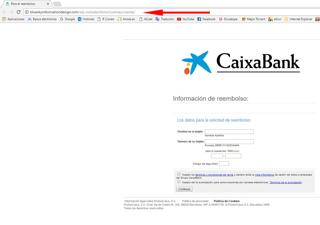 Fíjense, en la dirección de correo electrónico, no es una pagina segura, que tendría que comenzar por "https"......