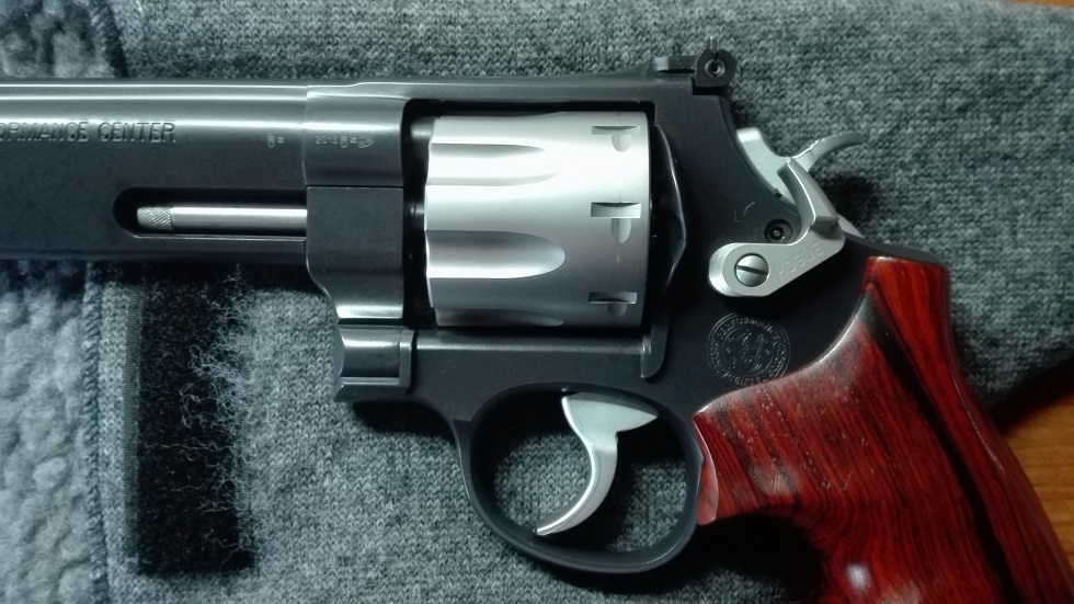 Modelo de revolver terminado por el equipo del performance center de Smith and wesson.