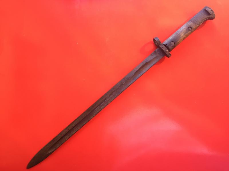 Esa bayoneta corresponde al fusil checoslovaco Mauser VZ 24, pena que esté tan oxidada!!