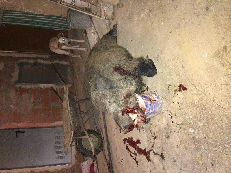 Yo tengo una nueva amiga, le he bautizado como Maruja, viene todas las noches a vaciarme el cebadero pero como ya nos hemos hecho amigos yo no la molesto, suele aparecer a las 22.30 minutos arriba minutos abajo y le acompañan 5 preciosos quintillizos, pasa a dos metros de mi por todo el claro y me saluda con un ronquido, ya estas ahi.. avanza tranquila hacia la comida y se pone a comer, en ese momento empieza la fiesta, les enciendo la luz para que no se coman una piedra por error y ellos siguen a su ritmo, me levanto, cojo el movil, les saco un carrete de fotos, meo, incluso me pongo a hablar por el whatsapp, todo esto porsupuesto con la linterna encendida, cada noche me toca cargar las pilas, y esque me encanta verlos y ellos saben que yo estoy alli (no son tontos) pero como si supieran que la cosa no va con ellos no pierden un bocado, la lastima es que todos no son como yo y seguro que hay algun desalmado que le entran y se la carga, es una pena, porque lleva 5 que son el refuerzo de los años proximos...