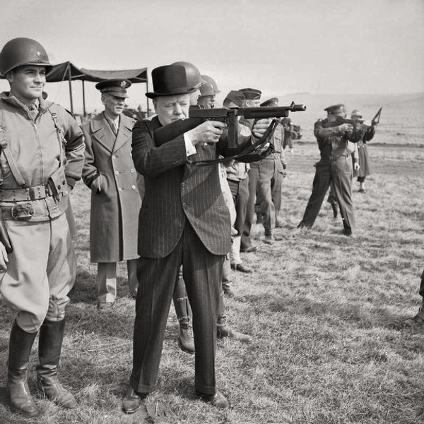 Pero el Thompson, con cargador de tambor, era la viva imágen de los Gángster de los 20. Es mas, aún hoy lo es. Churchill esta.feliz por que creia que ese arma era lo mejor que podían usar sus soldados, a el le encataba.