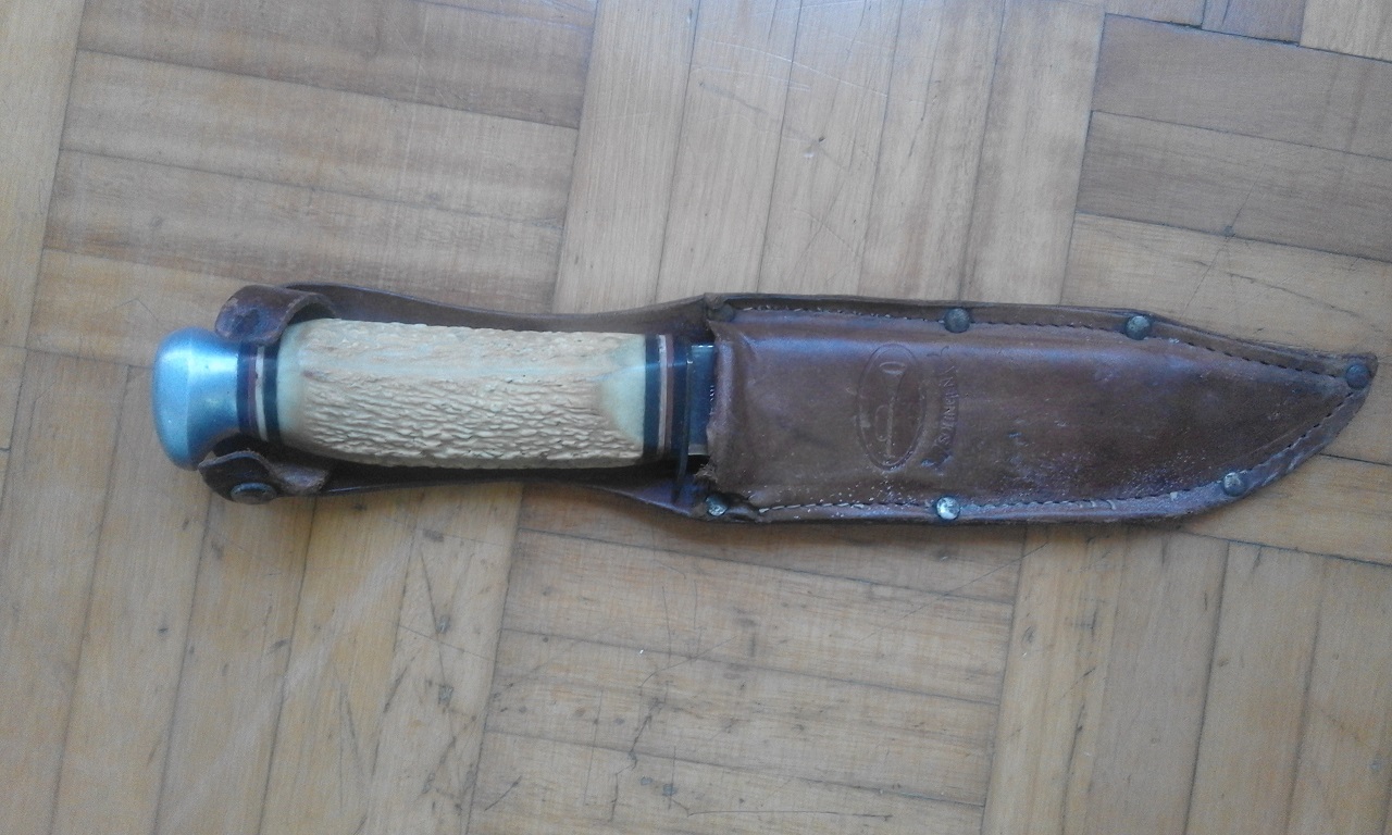 El cuchillo tiene el mango de asta de ciervo, es de la marca GEBR. WEYERSBERG SOLIMGEN, debe tener unos cuarenta años, la funda esta algo deteriorada por el tiempo, pero es la original. Precio 50 euros mas portes o cambio por navaja Spyderco.