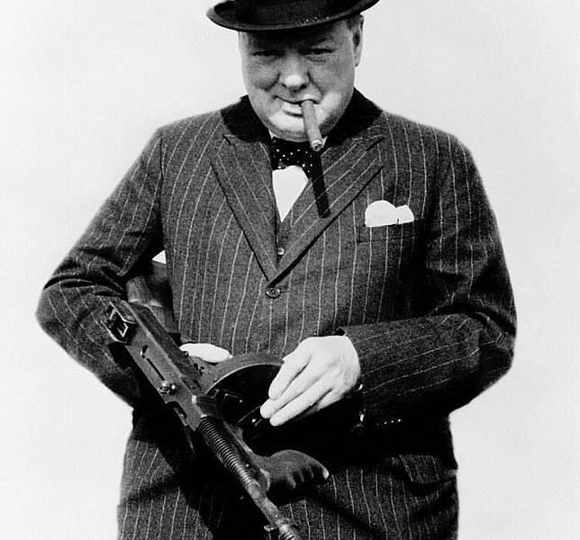Pero el Thompson, con cargador de tambor, era la viva imágen de los Gángster de los 20. Es mas, aún hoy lo es. Churchill esta.feliz por que creia que ese arma era lo mejor que podían usar sus soldados, a el le encataba.