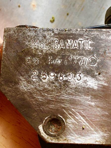 Jaja, correcto es una Gamatic se reconoce por la pieza que va montada justo detrás del alza que es la que se encargaba de amunicionar los perdigones del tubo-cargador , que por cierto te falta así como el soporte trasero. Personalmente me encanta esta carabina es un modelo adelantado muchos años a su tiempo y la ergonomía semi-bullpup me parece fantástica, pena del gatillo de las primeras duro duro