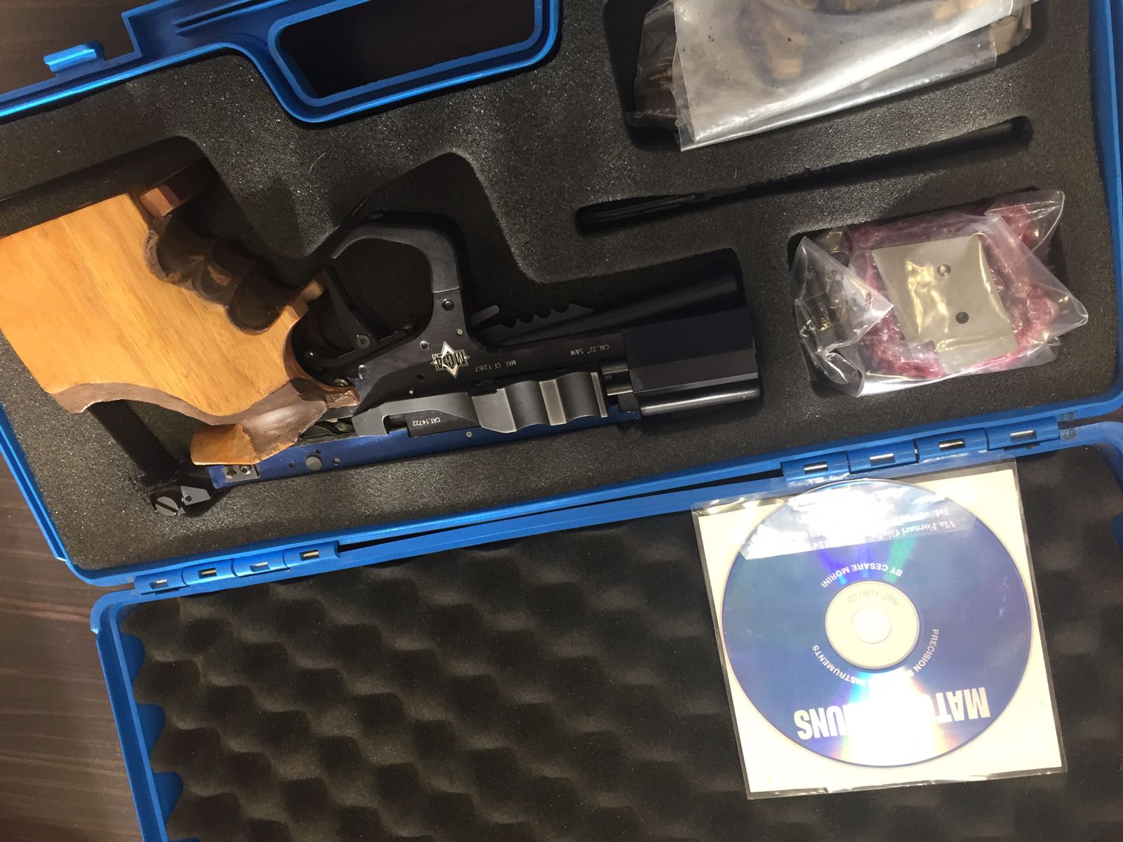 La segunda es una MATCHGUNS MG4 del .32, cachas talla M tambien con pasta, tiene a mayores cola del disparador recta, punto de mira más grueso que el de origen y contrapeso ligero con muelles de absorción como el del modelo rapid fire del 22, con su maletín, herramientas, CD con instrucciones, útiles de limpieza y dos cargadores. El precio es de 750 €
