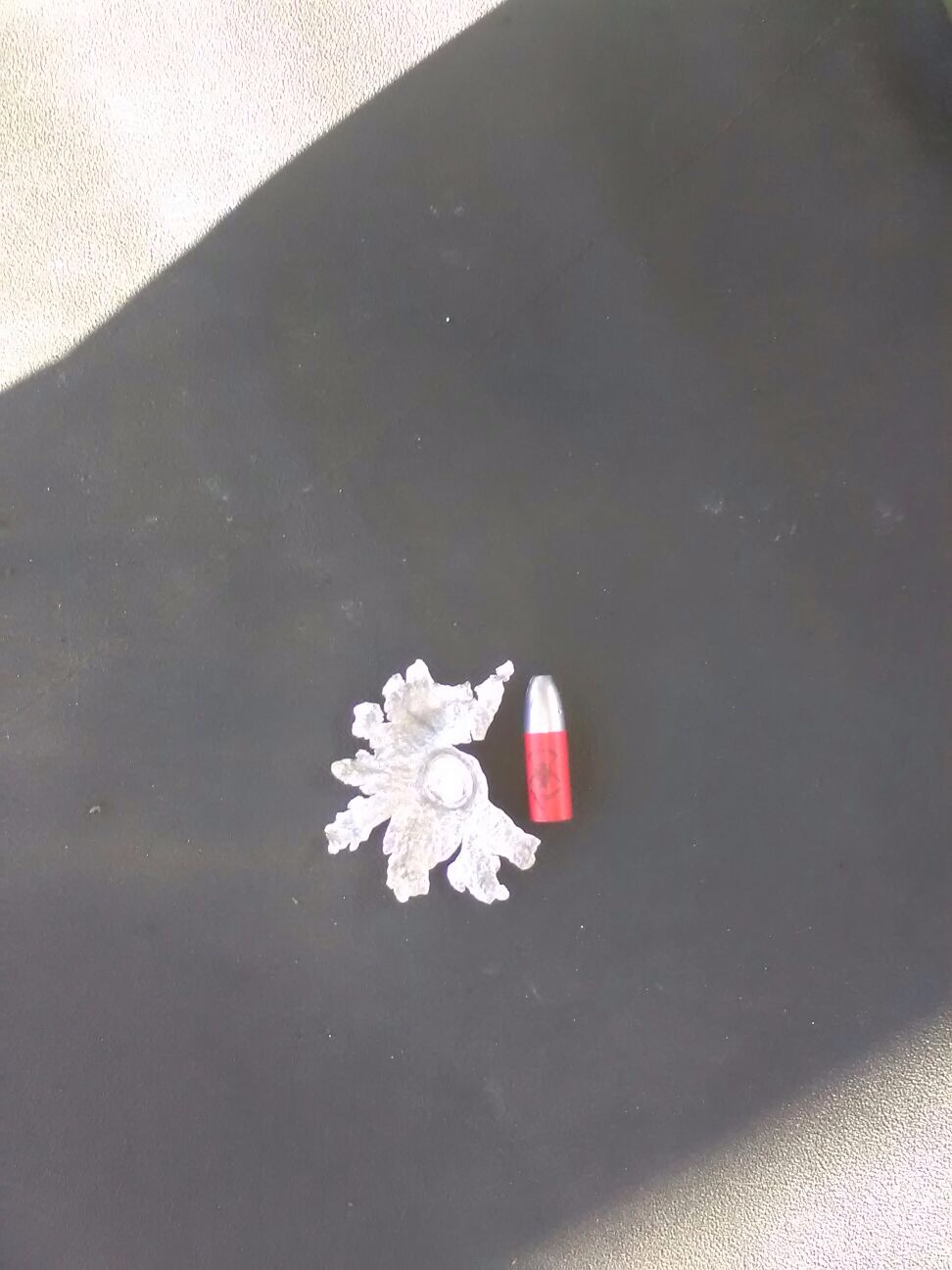 Os mando un par de fotos, una de un proyectil que ha impactado en el marco metálico del blanco de 600 yardas y como podéis ver va con bastante mala leche
