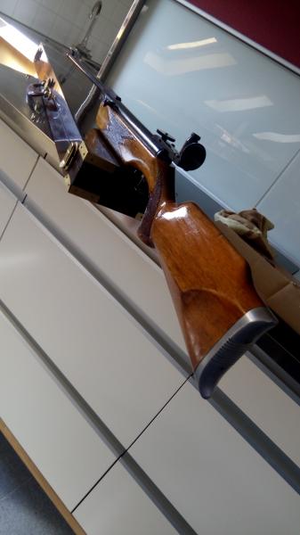 Subo unas fotos de mi Hw55 M (1955) de primera generación, aún sin el famoso gatillo récord, por lo que he investigado se montaban totalmente a mano con un riguroso control de calidad y tolerancias. Esta unidad la conservo en estado superviviente, no se ha restaurado, solo limpiado y engrasado la acción, limpiado e hidratada la madera, etc. Es destacable el diopter original y su peculiar funcionamiento pues para ajustar la altura es necesario aflojar casi del todo la pieza ocular, cosa que hasta que me di cuenta creía estropeado