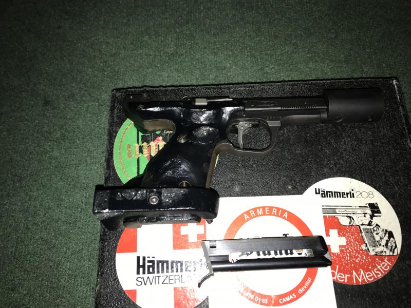 El modelo en concreto es UNIQUE/DES 69 del 22 Lr con contrapeso que se puede cambiar y poner de mayor peso o menor eso ya ha gusto, disparador afinado a 1 kg y se puede regular , dispone de un sistema mecánico por medio de un tornillo que deja practicar en casa en seco sin munición y no hace padecer a la aguja percutora