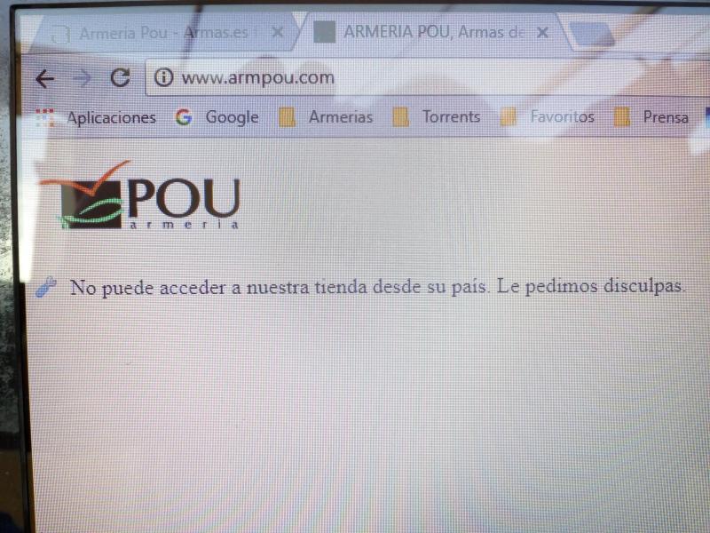 Buenas tardes,He intentado entrar en la pagina web de armeria Pou en Vich (Barcelona) y dice que no puedo acceder desde mi pais ,que es España