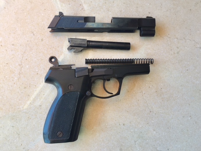 Armazon de aleación, corredera de bloque acero forjado y mecanizado, cañón de 4" acerrojamiento Walther-SIG.