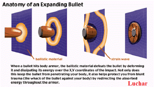 El alma de algunos chalecos presenta una composición de 30 capas de KEBLAR, reforzados con una capa mas de material de TUGSTENO o de ACERO INOXIDABLE de 4 mm. Esto les permite resistir disparos con balas de calibres .357 MAGNUM y 9 mm.