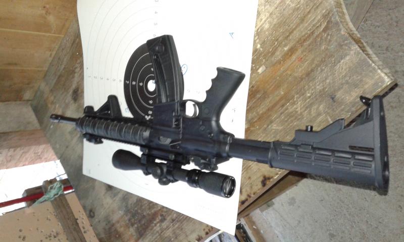 --Carabina negra mate, un cargador de 25 cartuchos, con empuñadura HOGE traida de EEUU y comprada a un compañero del foro, es de lo que más me gusta de este arma.