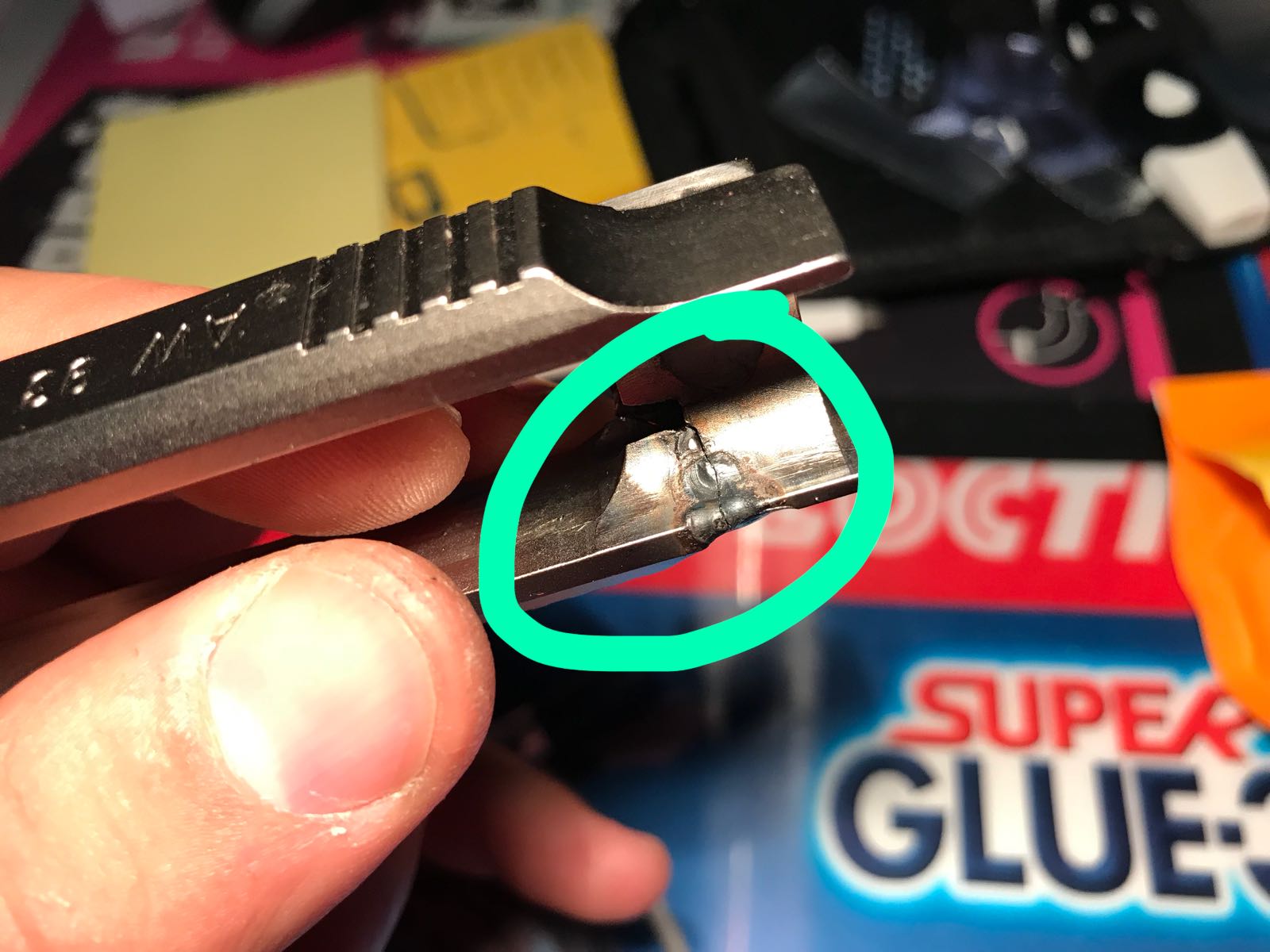 Cuando me llega el arma, me encuentro que bueno efectivamente las soldadaduras estar estan pero de láser NADA, y la delantera que encima nada de no pulir para reforzarla sino q es una soldadura posterior porque ya ha rajado la interior que le habían hecho y han tenido que hacer una nueva chapuza por fuera.
