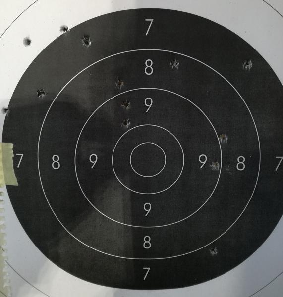 Pues los primeros disparos, a la izquierda abajo y tras unos retoques......SORPRESA!!!! sietes, ochos y nueves!!!!! no me lo podía imaginar, un arma tan pequeña.....increible.